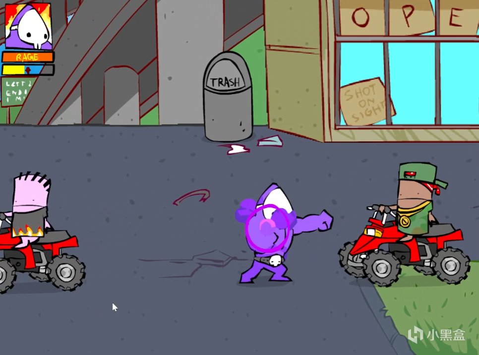 就像生活里的一样,一群孩子中总会有一个孩子王。在你狂扁的这群小朋友里也有一个——红裤衩。在你遇见他的时候他正在欺负别的小孩,他是游戏里出现的第一个会向你还手的人。只不过他的攻击方式比较笨拙,只会简单的直拳,直拳。来一个大风车就能可以轻松收拾掉。