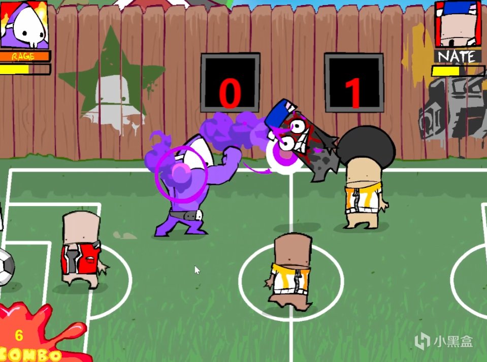 除了公园还有足球场和篮球场。足球场里一共有4个人,你不打的话他们只是互相进球的回合制游戏,你拿到球他们还会铲你,场景背后就是计分板,进球后会积一分。