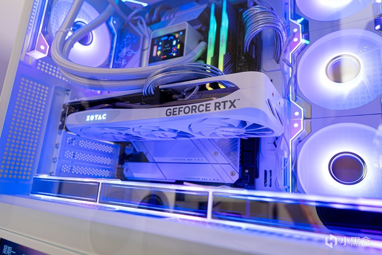索泰RTX 4060Ti月白GOC顯卡整體爲白色,LOGO支持RGB燈效, i7-14700K配4060Ti適合注重生產力輕度遊戲的用戶,有更高要求也可以看看索泰其他月白卡,有4070、4070Super、4070Ti Super等可選,外觀設計都是差不多的。