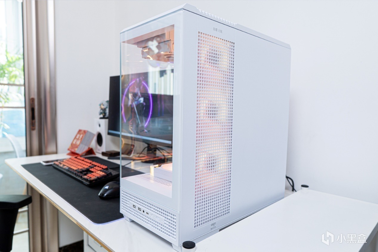 愛國者星璨大嵐屏顯版使用無立柱設計,上下分倉,佔用桌面空間更小,整機看起來比較緊湊,因爲副屏的加入,這款機箱在視覺觀感上非常棒,平時真的忍不住想多看兩眼屏幕。