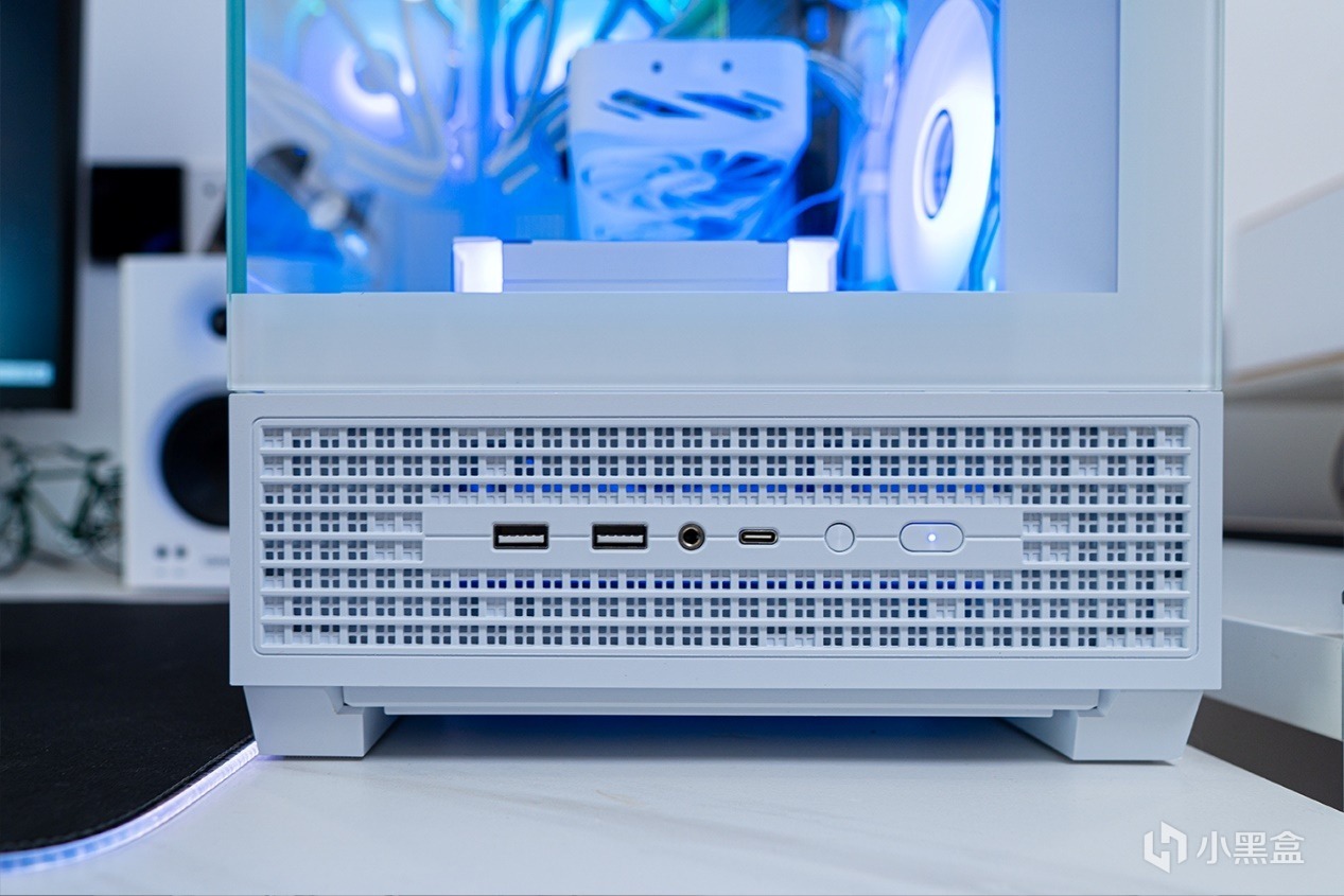 愛國者星璨大嵐屏顯版的接口和按鍵被放在了機箱正面,電源鍵帶有指示燈,兩個USB3.0和一個10GBPS的Type C口可以滿足日常外接移動硬盤、耳機等需要。