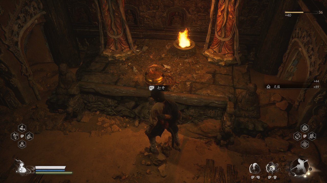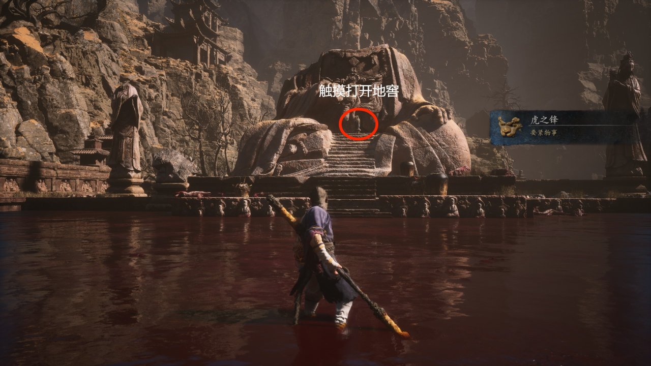 擊敗虎先鋒獲得【法術】銅頭鐵臂、【虎之鋒】。觸碰佛像可以打開地窖入口,進入地窖。