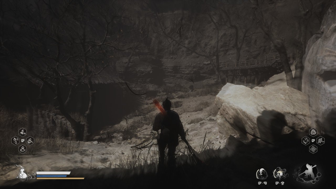 右邊一直走可以看到一處木橋,穿過木橋左邊的小院子裏有一個棺材,可以以後再來拿,直接往前走。