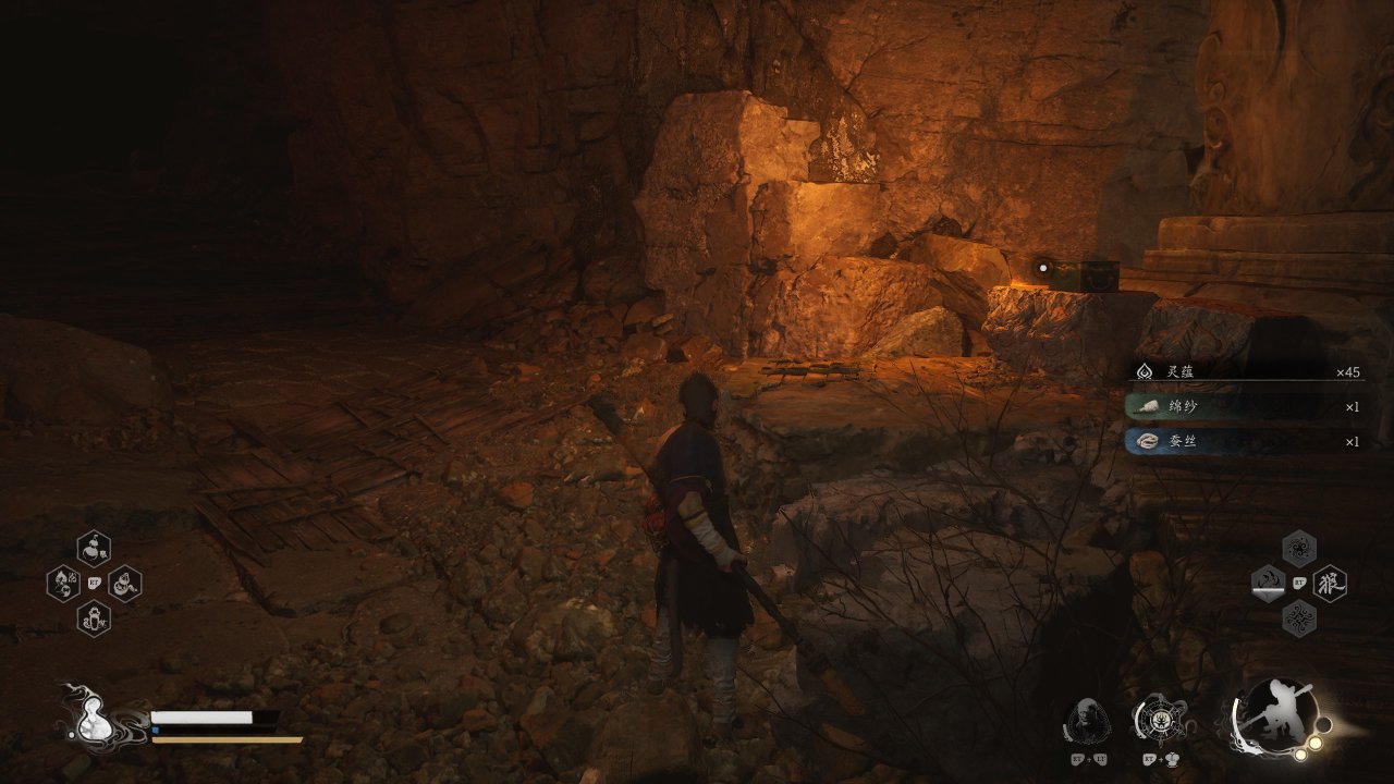 戰勝虎倀獲得【舊撥浪鼓】、【精魄】虎倀。吸收完精魄後進入虎倀身後的山洞,右手邊有一個盒子,打開獲得【珍玩】琉璃舍利。