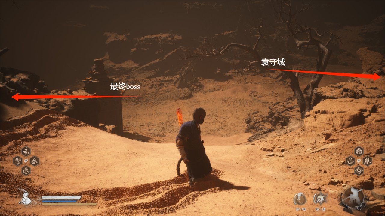 對話完成之後我們往下走,左邊下坡就是打黃風怪了,我們不急着去,先往上走找袁守城。