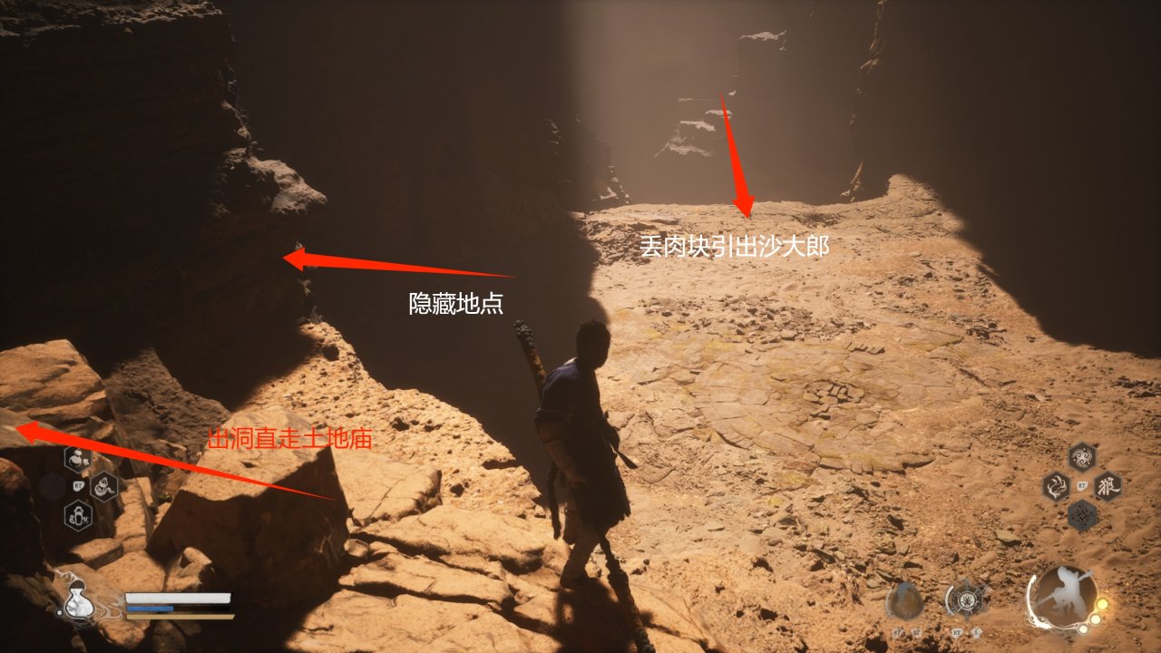 撿完東西就可以去打沙大郎了,打沙大郎的時候可以勾引它去撞左邊全是佛像的牆壁可以打開隱藏地點,如果打死了也沒有打開縫隙問題也不大,可以拿幽魂砸開。