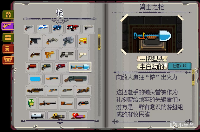 這個因爲黑盒遊戲元素聯動活動的系列大概到此爲止了(也可能還有一期),但《挺進地牢》所包含的彩蛋元素還遠遠不止於此,如果你想要針對性解鎖特定道具,移動版的內置wiki可以很便利的查詢各項物品的信息。