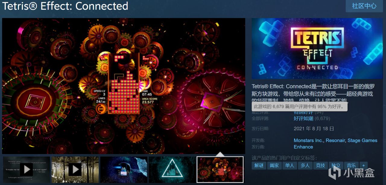 BTW:《俄羅斯方塊》在steam也有一些衍生遊戲,比較推薦的是《Tetris® Effect: Connected》