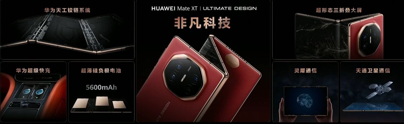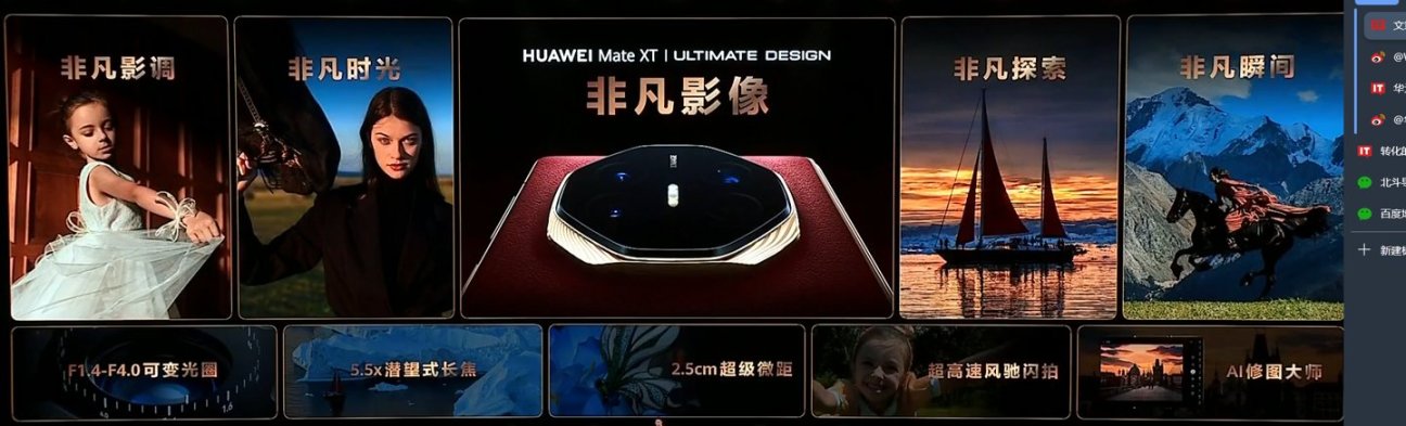 作为“全球首款量产三折叠手机”,Mate XT 非凡大师以其颠覆性的设计和前沿技术,成为了全场焦点。