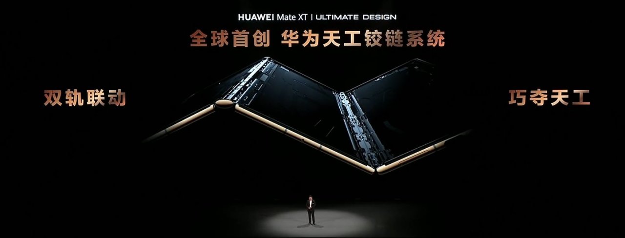 在折叠技术方面,华为 Mate XT 非凡大师首次实现了铰链内外弯折,搭载了创新的“华为天工铰链系统”。