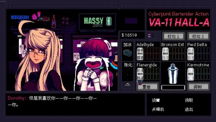 例如《賽博酒保行動》中,玩家需要根據對話調出適當的酒水,不同的酒水會帶來不同的劇情。其中,“酒精含量”是調製中的變量,玩家可以通過控制倒入多少份酒精來影響劇情,喝醉的角色有可能說出一些讓人出乎意料的話。
