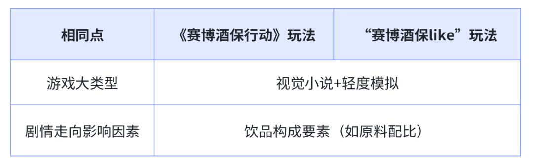 《賽博酒保行動》玩法與“賽博酒保like”玩法的相似點
