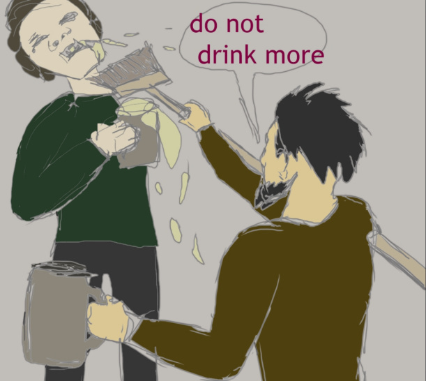 圖中文字翻譯:“別再喝了!”。圖源:Steam