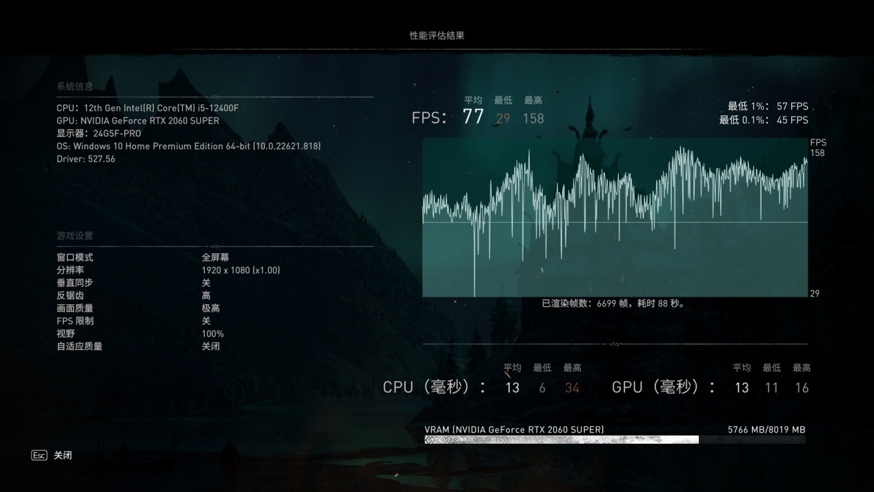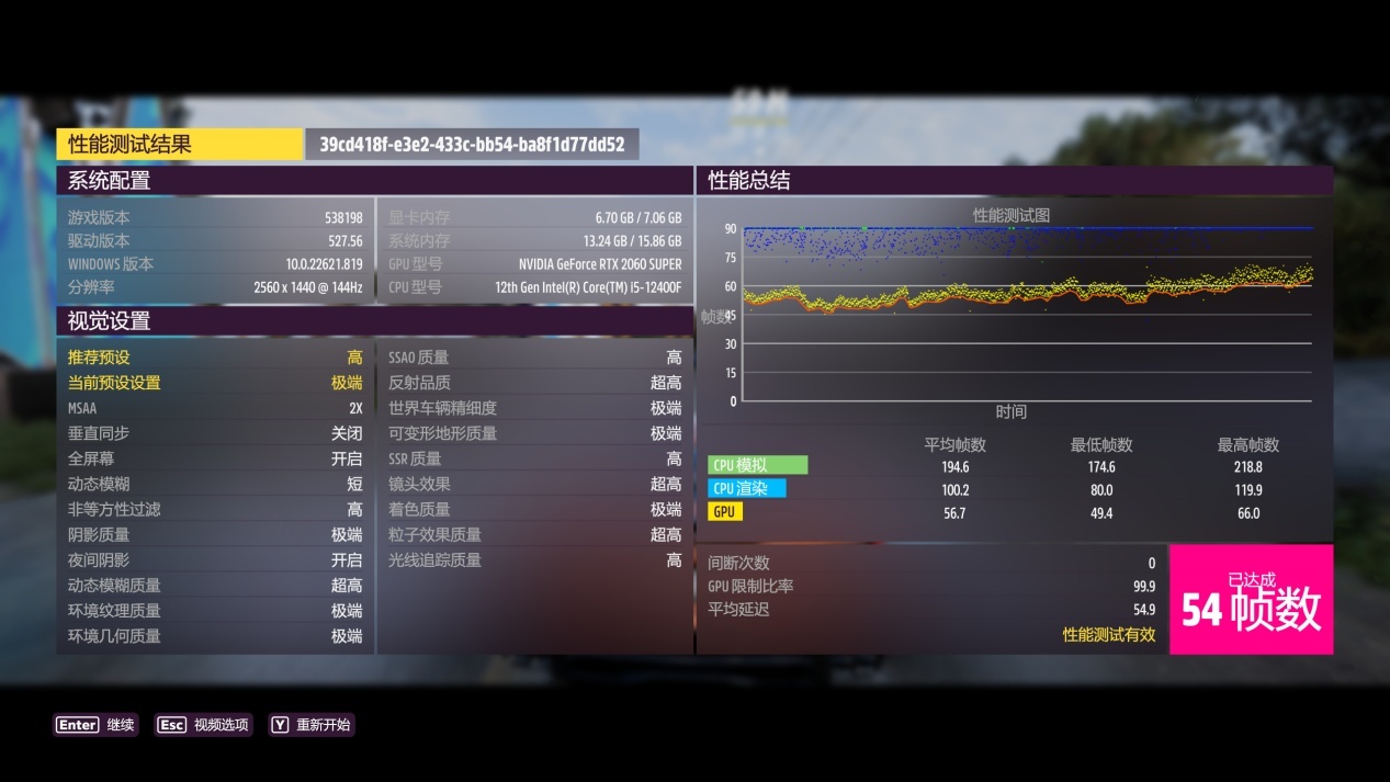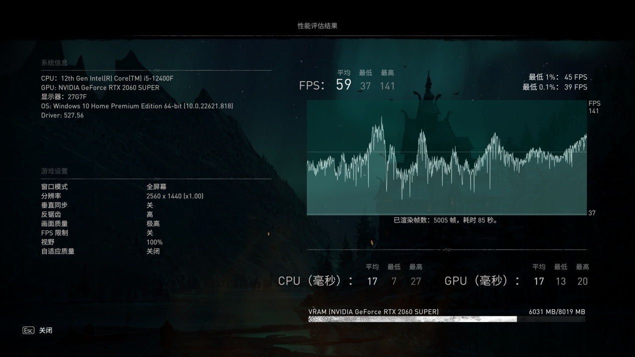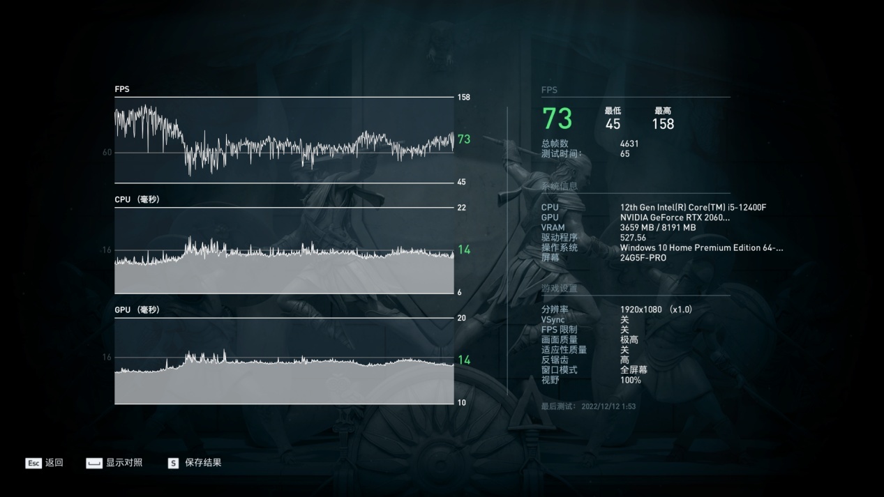从测试结果看,2060super在1080P分辨率,所有的游戏高画质都没压力,所以顺便测了几个游戏在2K分辨率的表现。