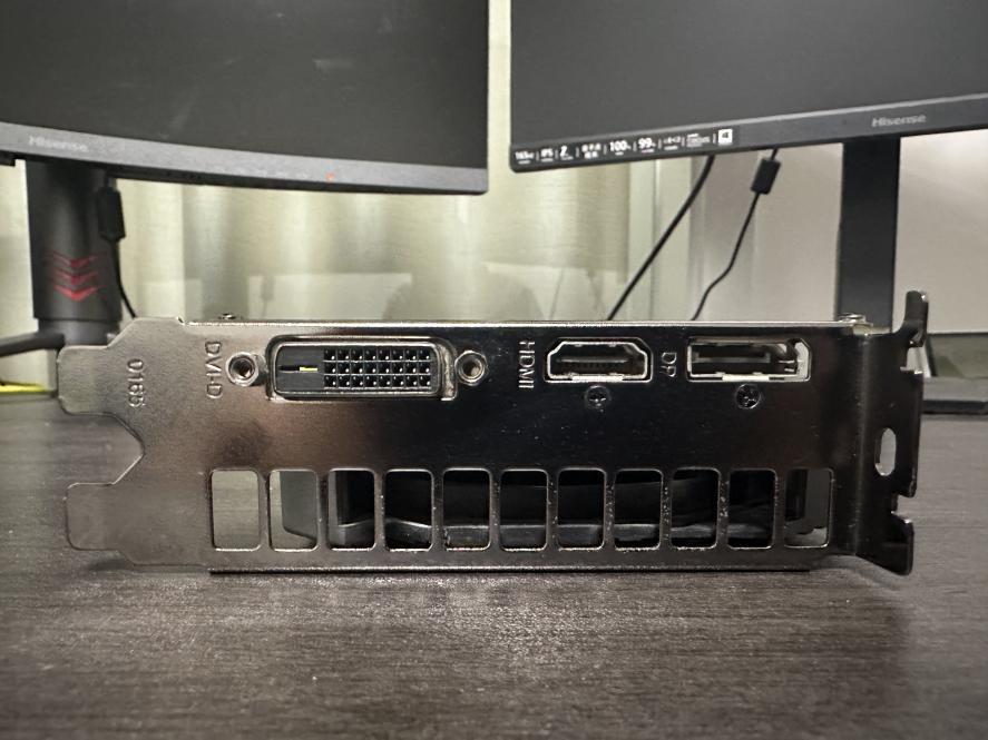 接口方面1×HDMI、1×DP、1×DVI,显卡挡板成色也很不错。