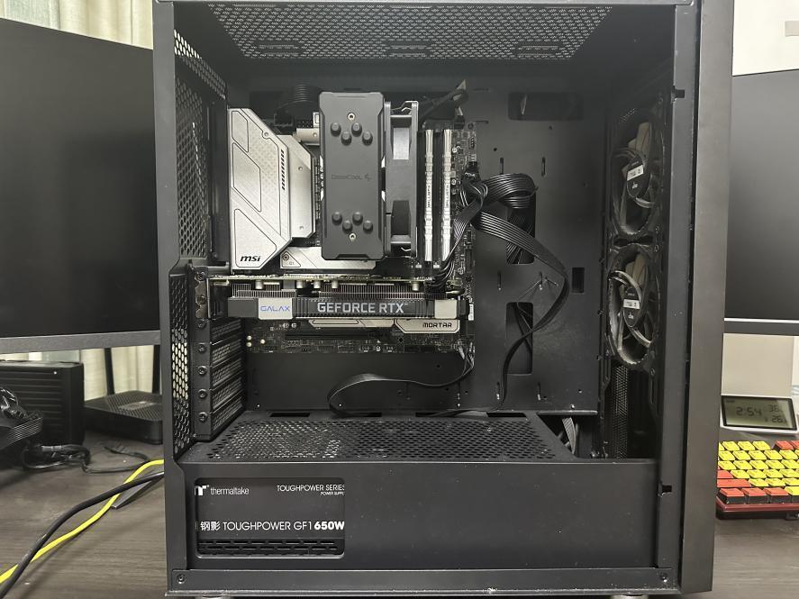 上机实拍图,开机前我还以为“GEFORCE RTX”是有灯的,开机没亮我以为坏了,查了下才知道根本就没灯。