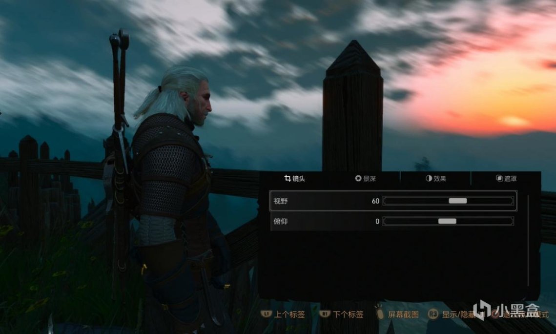 其次,次世代版本的攝影模式,也不能進行自定義調整。傑洛特的姿勢、表情亦或者NPC的姿態表情,都沒有辦法做調整,也沒有2077中提供的各種貼圖,甚至連濾鏡模式也沒有。這一點讓終於見到男爵後想和他好好合個影的我相當失望。