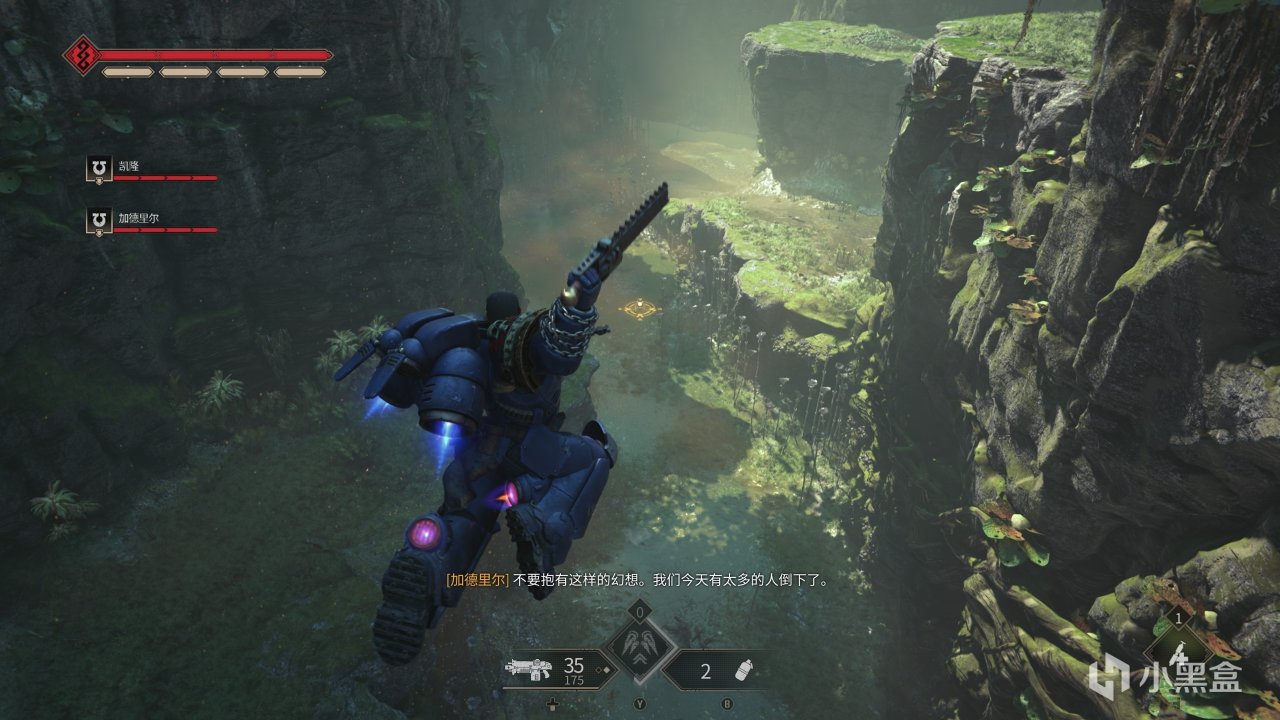 那么结合上述这些设定,感觉都是让人非常瓦库瓦库的动作要素内容,事实上在战役中,也确实让我感受到了难得的“操作体验”——只不过更接近于一个相对脆弱的毁灭战士而不是一个罐头超级战士,当然,也为它在多人游戏中的表现心存怀疑,因为多人必然会加强数值方面的困难度(游戏的三人小队是可以把倒地队友扶起来的),且仅仅在单人部分,游戏从战斗逻辑和战役表现力上,也表现出了一点的问题。