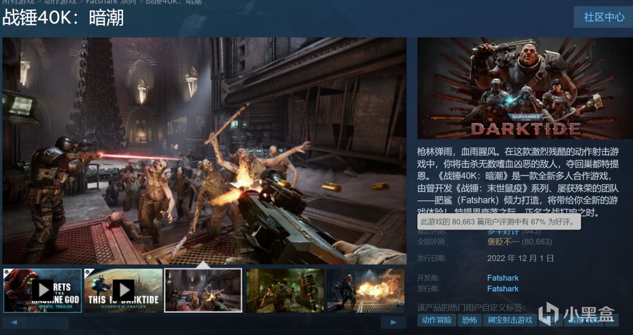 但宏大但是并没有充分利用的地图、相对单调的养成内容和职业之间并不紧密的协作性共同破坏了《战锤40K:暗潮》带给玩家的协作乐趣(作为对比,《战锤:鼠疫2》是83%好评率),所以很多锤粉对于《战锤40K:星际战士2》的期待,是希望它可以给暗潮的制作组肥鲨敲敲警钟,让他们不要再摸鱼了。