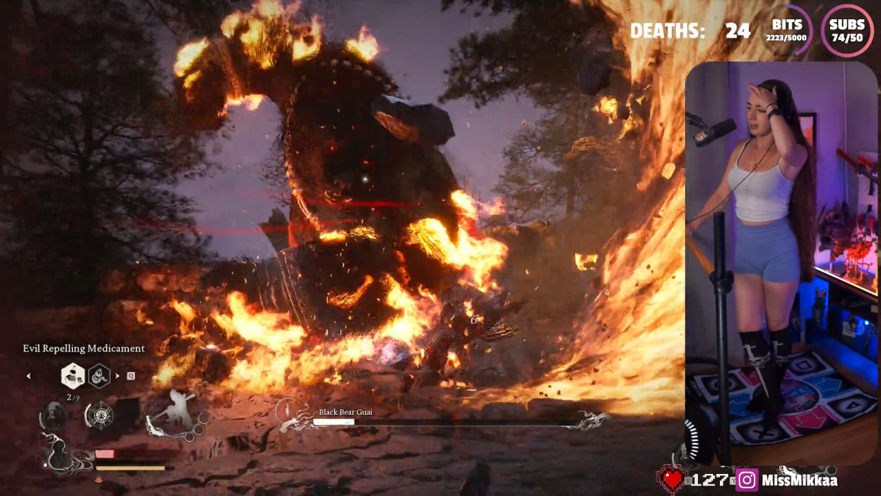 那個曾用跳舞毯玩《艾爾登法環》的主播missmikkaa,在《黑神話:悟空》二週目後再開新檔,這次選擇用腳(跳舞毯)玩《黑神話:悟空》。