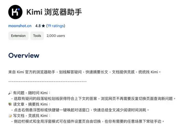 Kimi浏览器插件是AI时代的产物,它集智能问答、文本解释、页面总结等功能于一身。