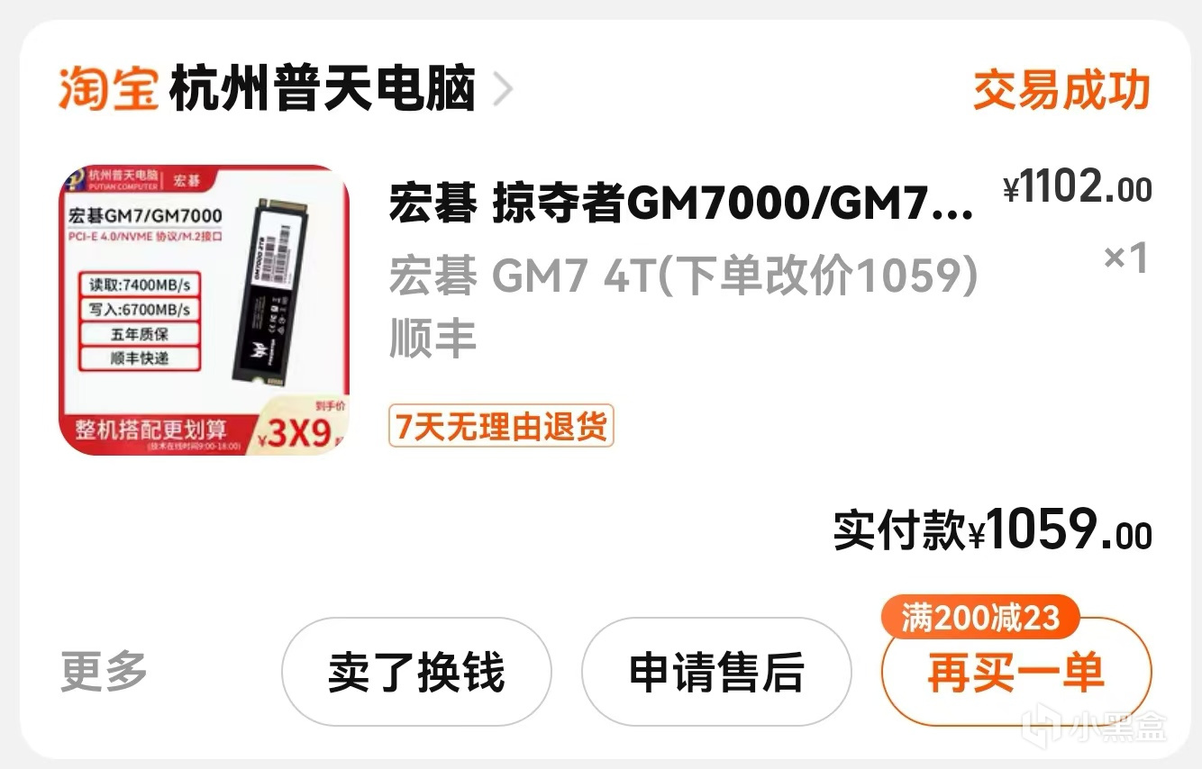 我自己有兩張GM7,4TB的當遊戲盤,2TB塞進PS5裏,但2T版本我是499買的(購買記錄找不到了),4TB一千塊買的,購買記錄如下圖