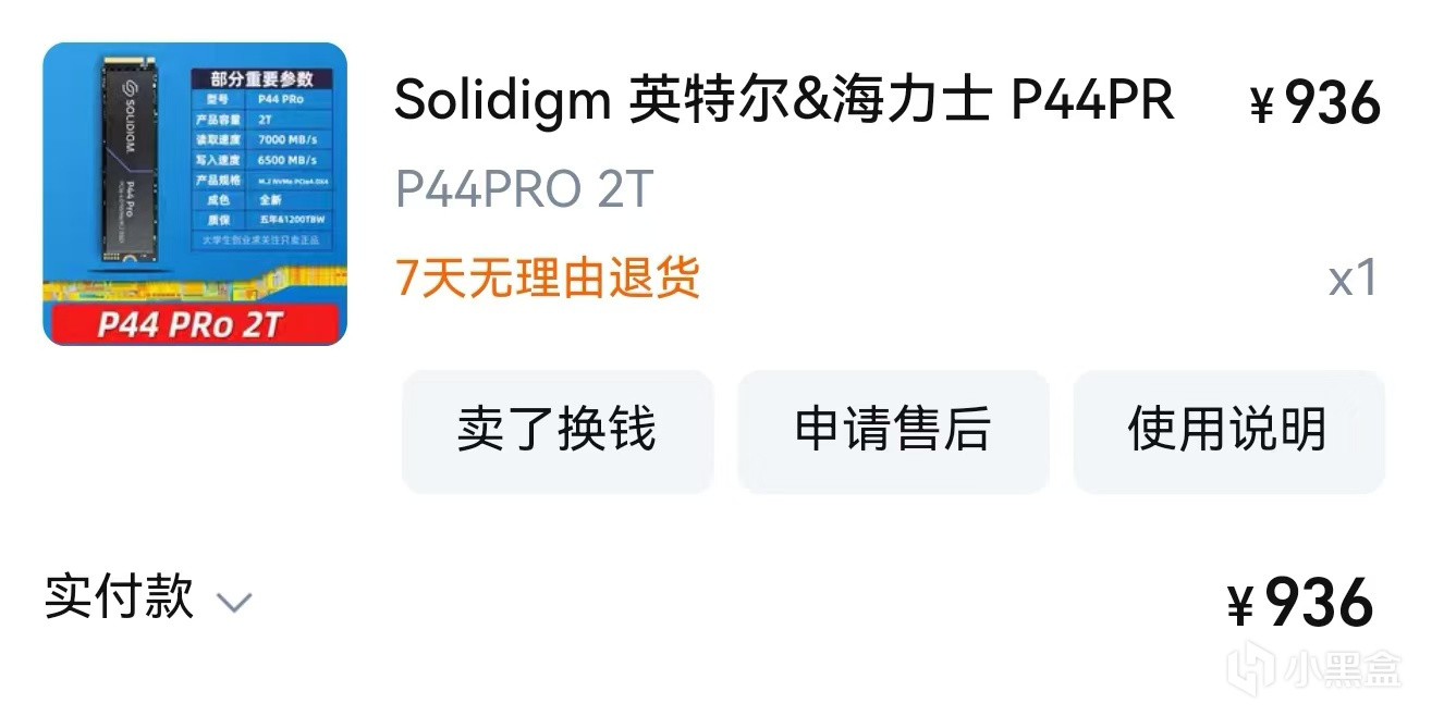 同時它還是我主力機的系統盤,下圖爲購買記錄。
