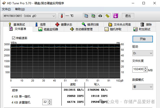 幻隐HV2283 1 TB电脑可用容量1024*0.931=953.344。用CrystalDiskMark简单的测个速度,顺序读写3000多,4KQ1T1随机读写49、86MB/S。顺序读写优秀,4K随机读写一般。