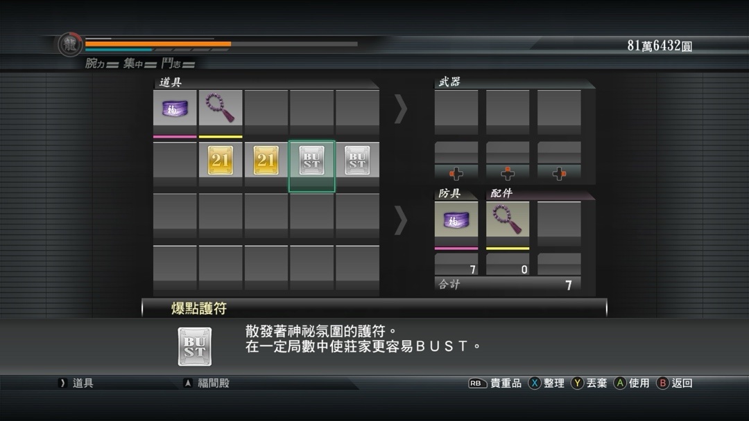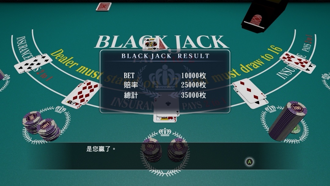 所以最终我们单局可以一万筹码玩一局,也就是一百万日币一局!City不City!Crazy不Crazy啊!以前都只能压一千筹码,已经疯狂到回不去了!建议将苍天堀和神室町的钥匙柜打开,里面有道具黑杰克护符和爆点护符,钥匙柜可以在网上各个地方找到攻略!什么你说有点懒?OK,我贴一下~