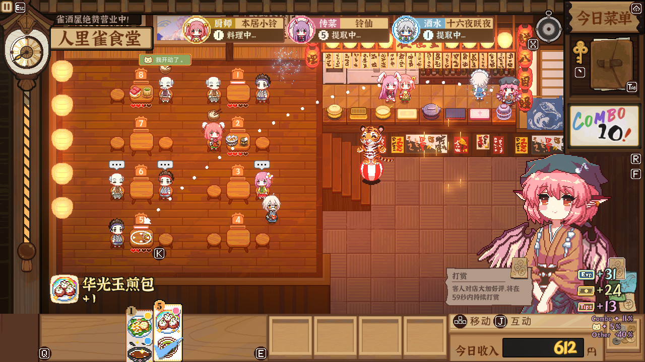 購買建議:遊戲內容可以大致上分爲白天外出收集各種食材和晚上經營餐廳兩部分,白天通過購買物資、收集素材、和羈絆對象聊天並且可以拜託其收集或者進行邀請、提前準備菜餚諸多種方法推進時間,晚上顧客來後,按普通顧客點單上菜、以及揣摩特殊顧客的心意按照需求,製作達成完美評價並獲取金錢遊戲。與我之前玩過一款遊戲很類似:黃昏酒館。所以話說回來,東方夜雀食堂這款遊戲非常好玩,不然Steam也不會一直都是98%好評如潮,該遊戲適合喜歡玩經營的玩家,不過我還是非常建議上手試試的,上手很快操作門檻很低,相信你很快就會入迷的!