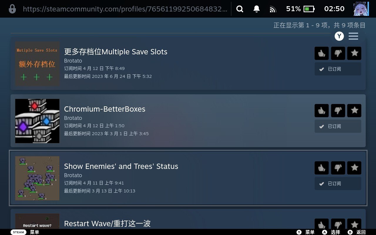 購買建議:土豆兄弟是一款非常優秀的肉鴿類遊戲,其中的角色多達四十多種,你需要手持6把武器然後在方塊地圖中擊退20輪敵人,並且在每輪結束後,在數百種武器道具商店中購買道具,創造屬於你自己的流派。遊戲真的非常非常好玩,非常容易上頭,作者本人也是全成就通關過了(50多個小時)。遊戲DLC本來說的暑假髮售現在也跳票到11月份了,不過你可以下載測試版的來體驗一些新角色和道具。遊戲也是支持創意工坊的,裏面也是有非常非常多的MOD,這裏給大家推薦6個我自己用上去比較好用的大家可以去搜搜看,找到中意的MOD直接點訂閱然後返回遊戲就可以了
