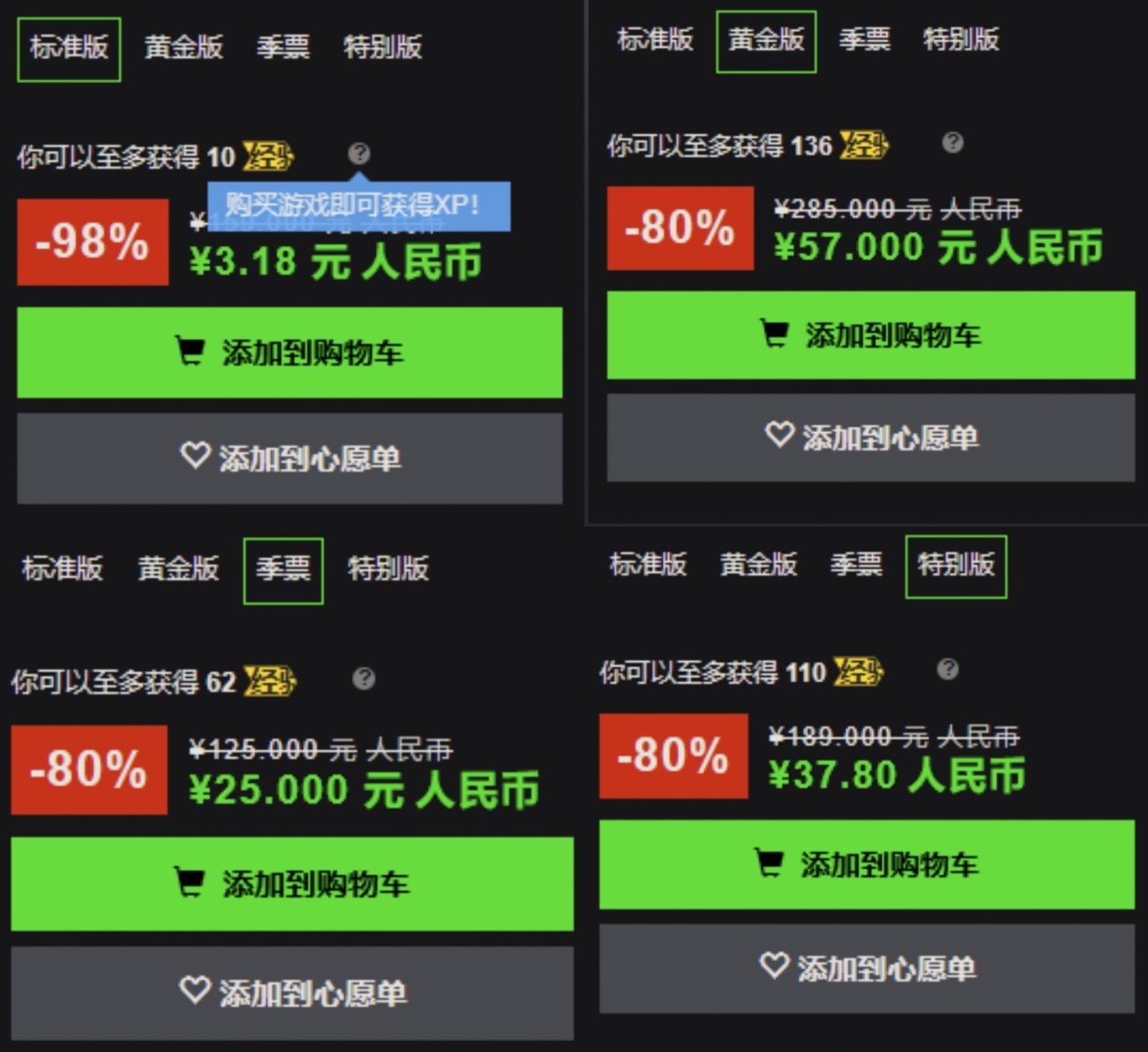 PS:目前特別版和黃金版Steam平臺沒有打折,如果不介意育碧平臺且着急入手的話可以看看GreenManGaming平臺(最好開加速器),此平臺購買後是在育碧平臺激活的,以下是該遊戲目前在平臺的價格 ↓ ↓ ↓