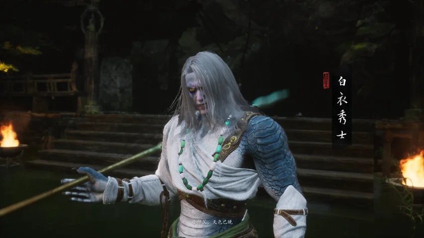 爲了幫助大聖達成這一目標,楊戩派出六怪兄弟在天命人的前行路上設下障礙,白衣秀士就是其中之一。當天命人來到白霧澤,初次遇見白衣秀士他會說:“我奉大哥之命來此,絕無把戲。”