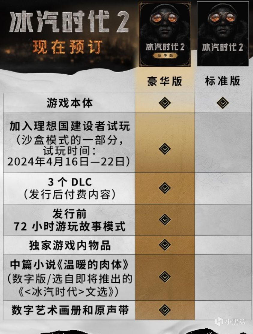 而現在《冰汽時代2》已經開啓了預購,遊戲分爲兩個版本,一個標準版,一個豪華版。下面爲大家帶來《冰汽時代2》預購及豪華版獎勵一覽