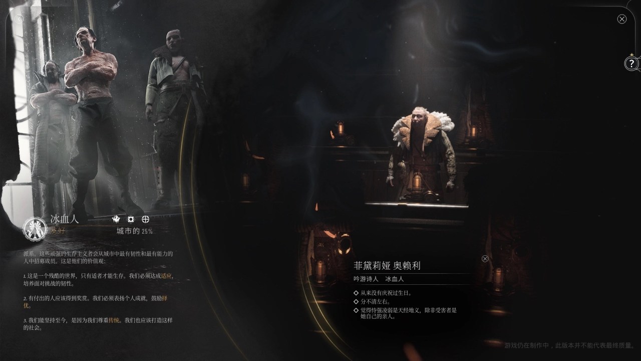 分别有采集员、科技至上主义者,冰血人和机械师。总体是采集员、机械师两个开局自带党派,冰血人、科技至上主义者两个中期才会出现的党派。冰血人从采集员中分化,科技至上主义者从机械师中分化,相对于采集员、机械师,他们会显得更极端,能研究更多样化的建筑及法案