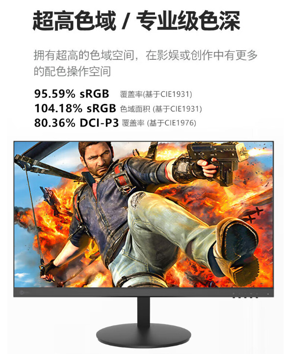 採用 Adaptive-Sync 同步技術,還支持 HDR10,色彩方面:sRGB 覆蓋率 95.59%、DCI-P3 覆蓋率 80.36%