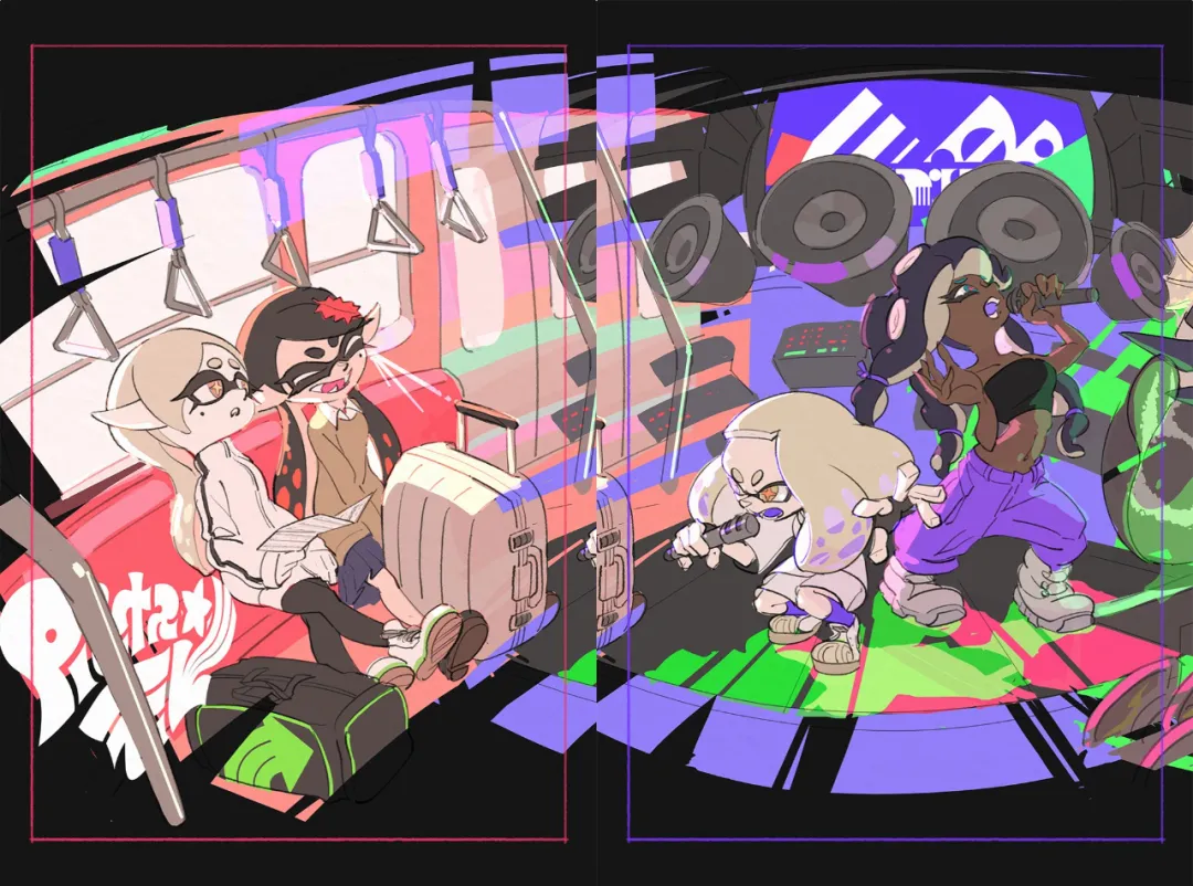 《斯普拉遁3》大型祭典還有2天開戰,官推今日發佈了第二張插畫,可與昨天的拼接到一塊。