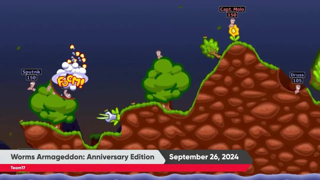 月前早些時候的直面會混剪中,基於1999年舊作重製,百戰天蟲週年紀念版《Worms Armageddon: Anniversary Edition》宣佈9月26日推出數字版。