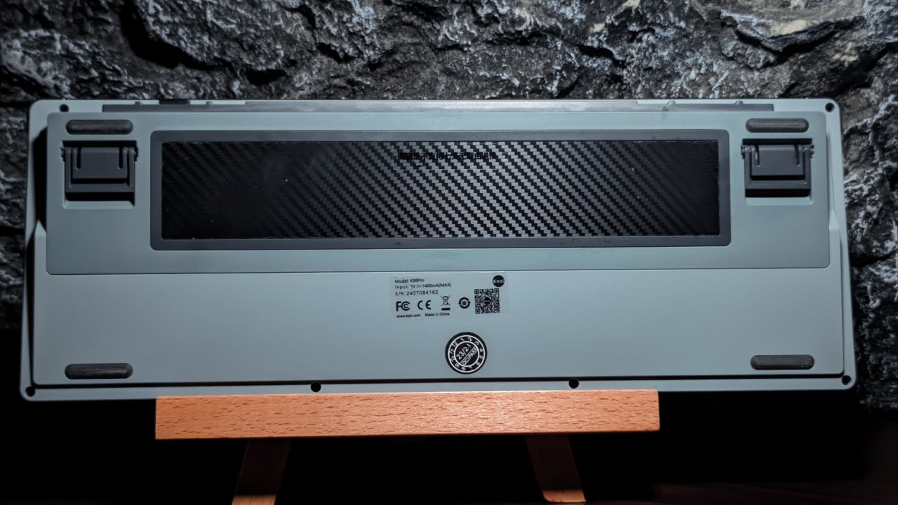 鍵盤的背部就有趣很多,一塊碳纖維紋路的裝飾板讓我想起了夜魔EX的碳纖維,雖然比不了,但怎麼說哥們這也有碳纖維啊哈哈