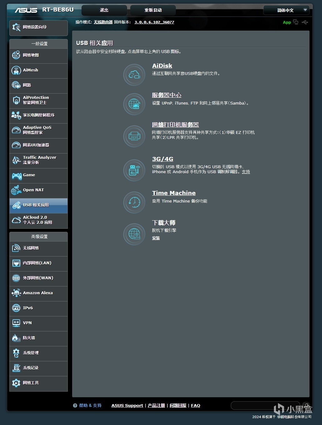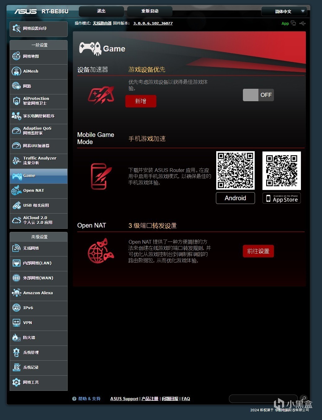 軟件方面,華碩這款RT-BE86U可就稱得上是強大了,無論是功能性、還是易用性、亦或是可玩性方面,這款路由器的表現都非常出色。其標配了Ai智能網絡衛士可以保證安全,內置了網易*****,而且還針對遊戲有專門的接口、優先級優化,除此之外,還可以拓展USB設備,拓展輕度NAS功能,滿足各種用戶的體驗需求。