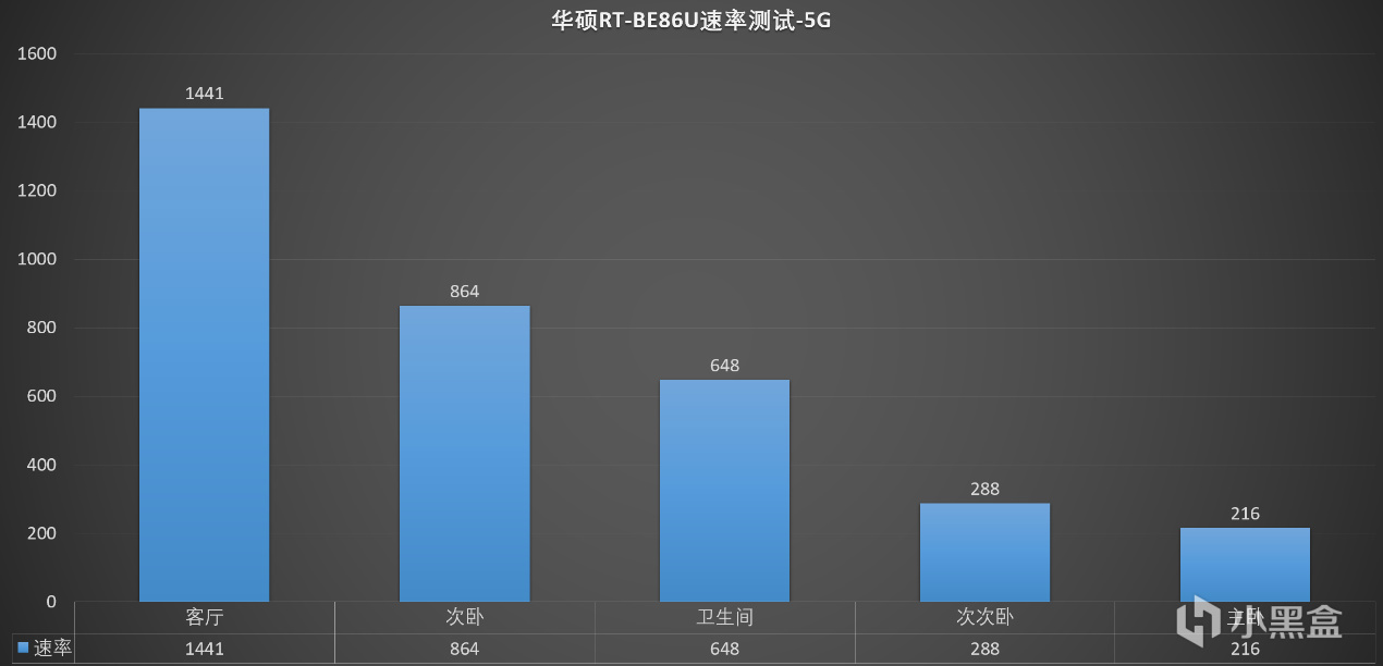 ▼簡單彙總下測試數據,在客廳的最理想的狀態下,搭配小米13 Ultra手機,最大帶寬可以去到1441Mbps,表現非常不錯。在其餘的位置,帶寬順序下降,在主臥躺牀上的時候,帶寬僅有216Mbps。