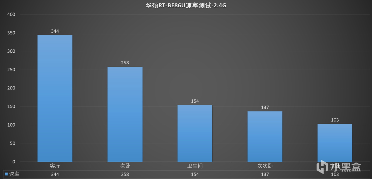 ▼測試完5G的WIFI,接着測試下2.4G的WIFI。在客廳最理想的情況下,小米13 Ultra的連接帶寬僅有344Mbps。