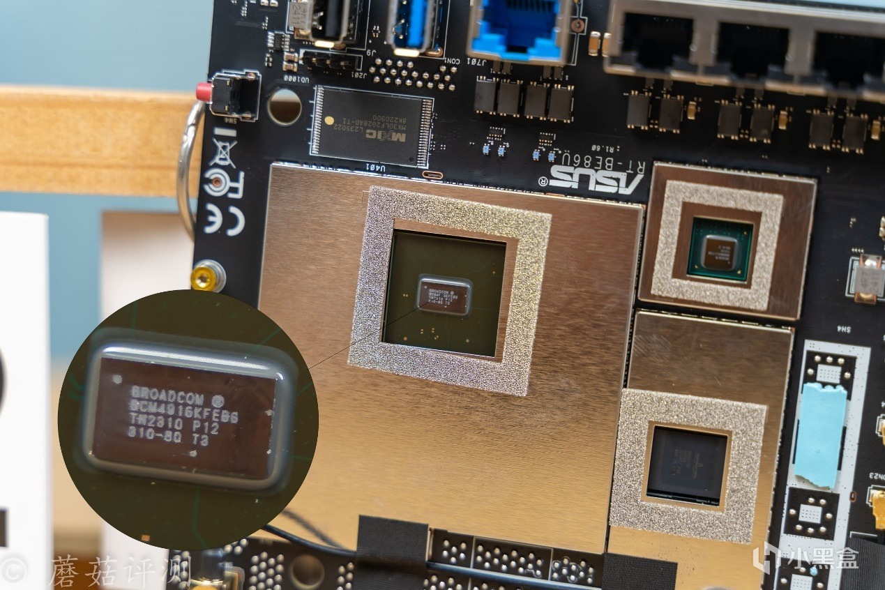 ▼右側最大的是這款路由器的核心SOC,博通的BCM4916,這是一款定位高端的WIFI 7 SOC,其採用四核心的ARMv8架構,主頻2.6GHz,性能非常強大,另外其原生支持一個萬兆接口及多個PCIe,擁有非常強大的拓展能力,另外其還具有一個雙發的Runner網絡處理器和一個高性能的安全處理單元,綜合實力出衆。