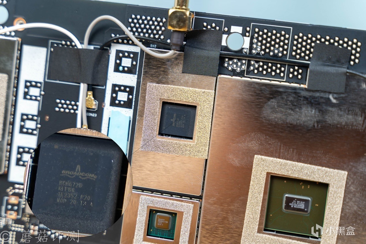 ▼2.4GHz部分用的是3顆skyworks的FEM芯片,絲印85355,不錯不錯。另外,對應FEM芯片的PCB背面位置,有專門的導熱墊覆蓋,快速把芯片內部的熱量導出,輔助散熱,保證其穩定運行。