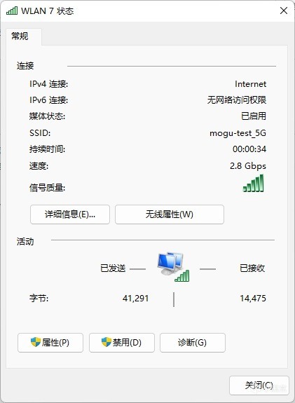 ▼搭配WIFI 7的網卡,連接5G的WIFI,帶寬可以顯示到2.8Gbps。