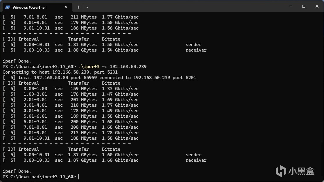 ▼同樣跑個帶寬測試,但無線信號受到各種干擾的影響比較大,蘑菇這裏的帶寬只能跑到1.7Gbps左右,多次跑測試,帶寬最高也只能跑到1.9Gbps左右。