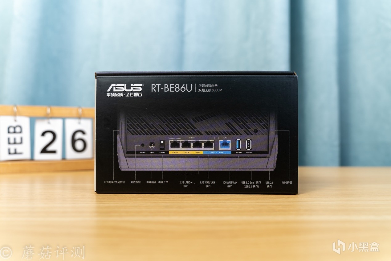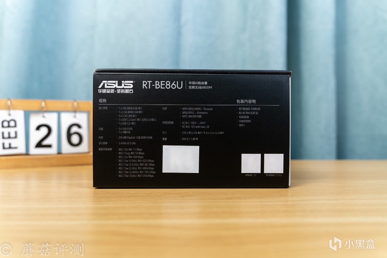 ▼包裝盒非常方正,正面有路由器的外觀,非常熟悉的華碩86系路由器的外觀風格,左側是路由器的型號和一些特性介紹。