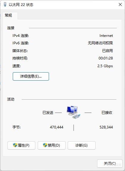 ▼系統內可以清晰的看到帶寬,在2.5Gbps左右。