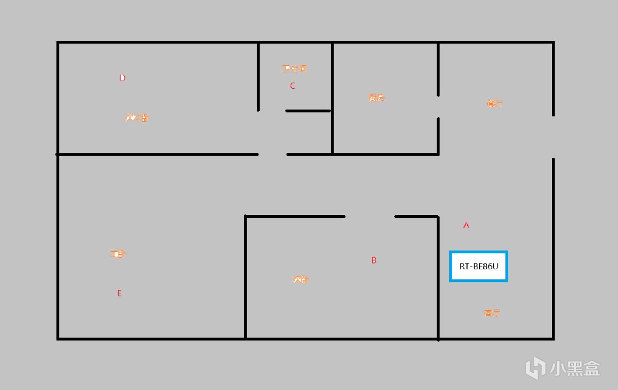 ▼蘑菇現在住的房子很常規,面積在120平左右,三室兩廳兩衛,不過一個衛生間在主臥。這個房子的進戶網線在客廳的位置,因此路由器就放在客廳,這裏測試了5個點的信號和帶寬情況,分別是客廳、次臥、衛生間、次次臥和主臥,模擬下日常在家裏不同位置的上網體驗。