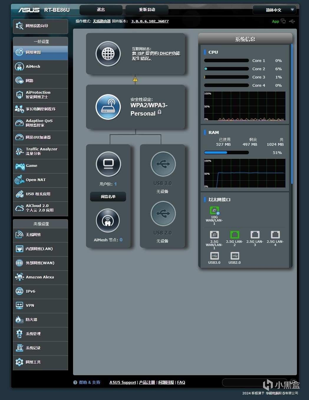 ▼另外,這款路由器支持華碩的AiMesh功能,可以輕鬆添加AiMesh節點,拓展網絡覆蓋能力。面對一些別墅或大平層用戶,入手多個產品,組個有線Mesh,美滋滋。對了,這款路由器的的Lan口起步就是2.5Gbps,非常夠用。